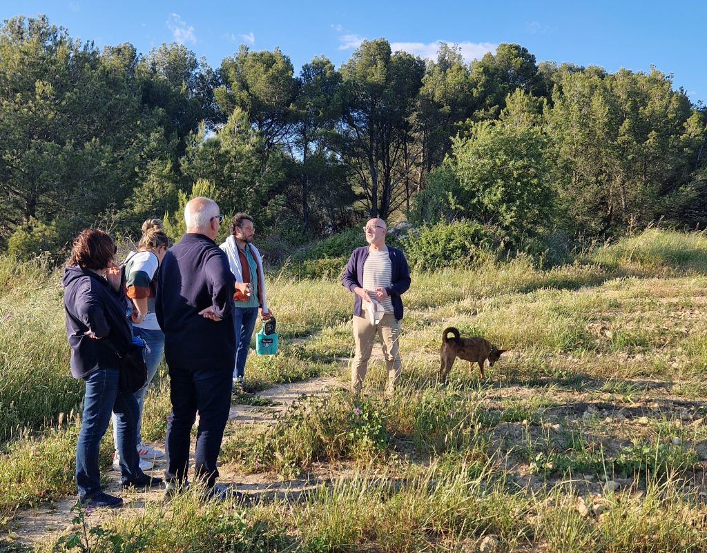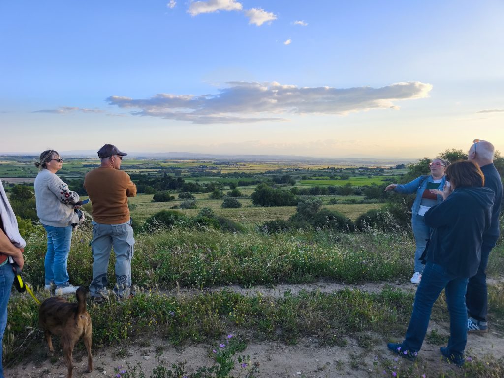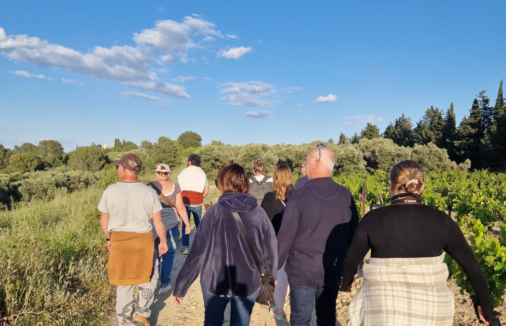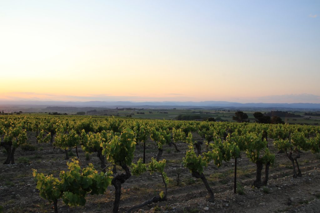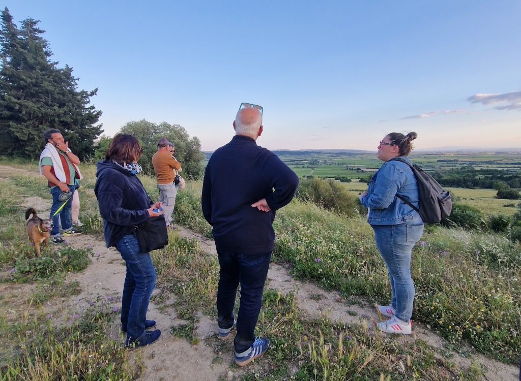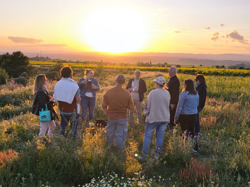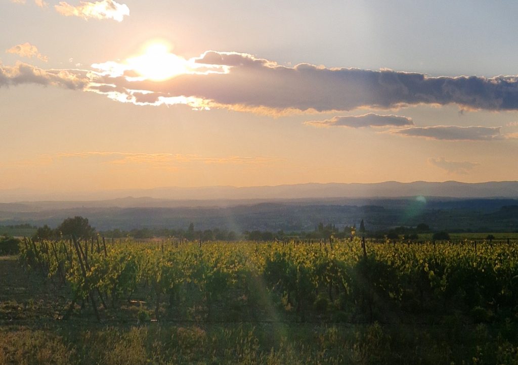 De ce point haut nous gagnerons le point de rendez-vous du coucher de soleil en traversant les rangs de vigne. Entre vignes et oliveraies, laissez-vous envoûter par la beauté des paysages : Montady, le Mont Caroux et la Montagne Noire s’offrent à vous dans un panorama exceptionnel.