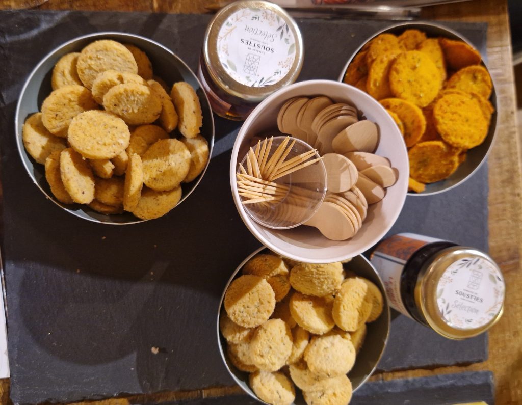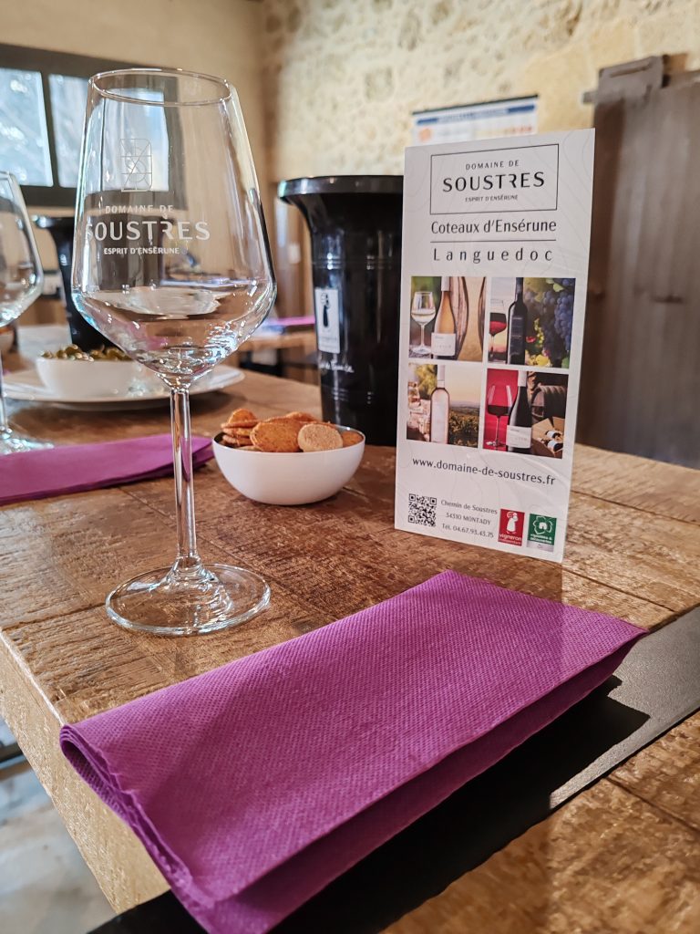 Ces dégustations peuvent être accompagnées d’amuse-bouches locaux (biscuits salés d’Histoires Gourmandes et Olives de Lou Moulinet) et/ou d’un plateau de fromages sélectionné auprès de la Cie des Fromager (Montady) .
