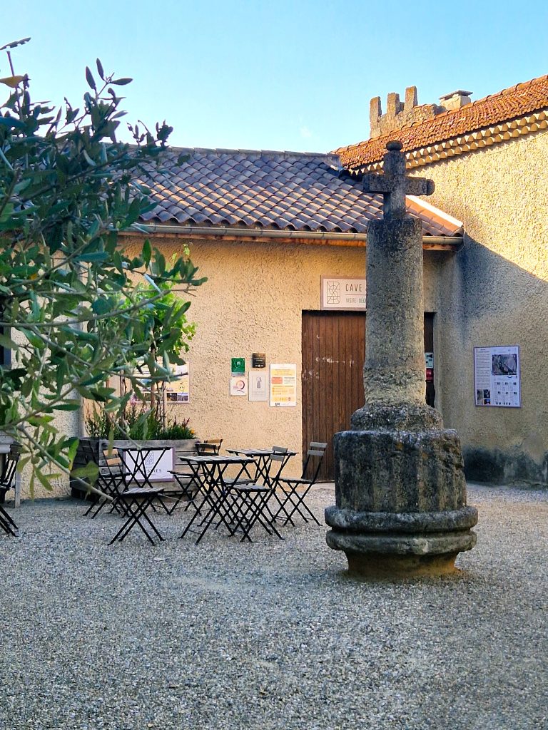 Au sommet, vous arrivez au milieu des oliviers et très vite vous verrez le site archéologique et le musée de l’Oppidum. Là se tient la plus grande parcelle de Grenache Noir du domaine, sur le plateau sommital de la colline.