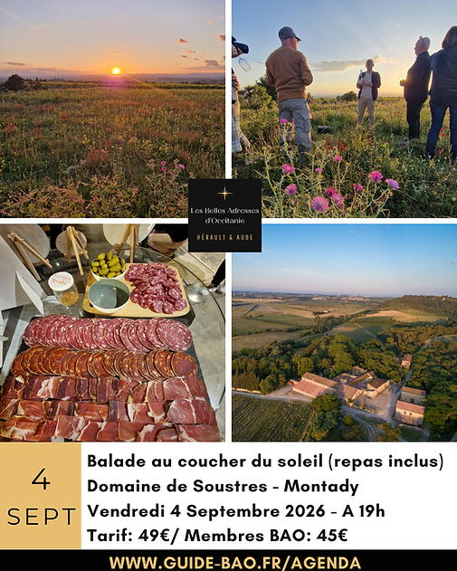 Vivez un instant magique où NATURE & VIN se rencontrent sous les lumières dorées du Languedoc.