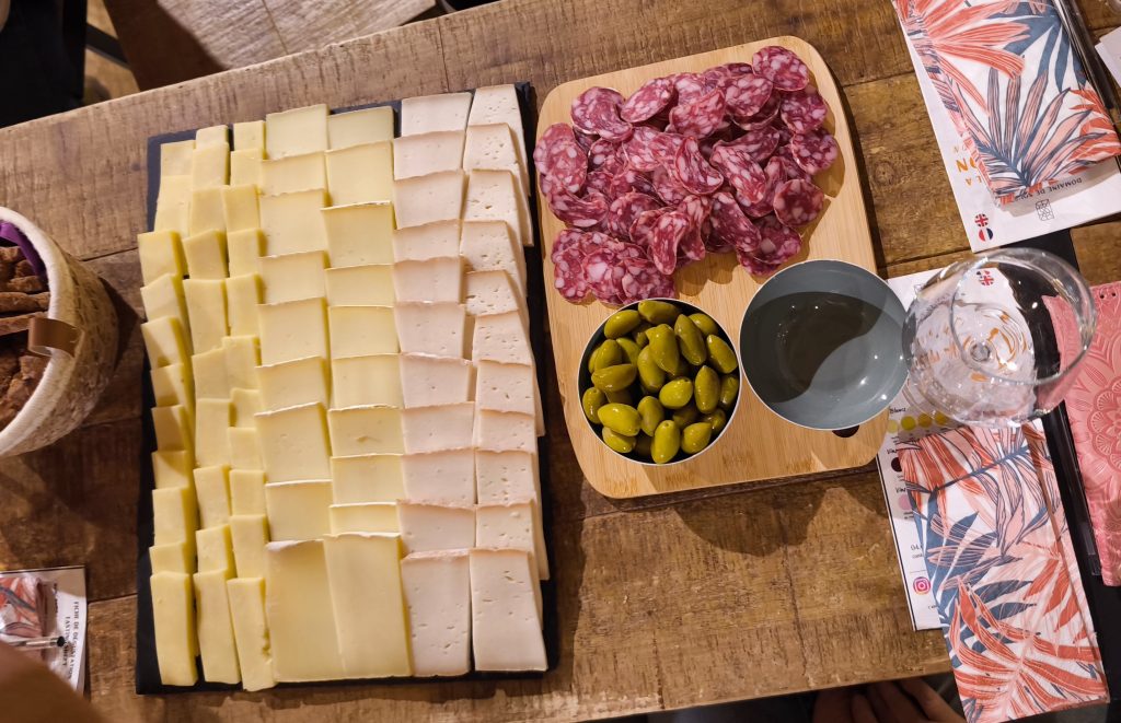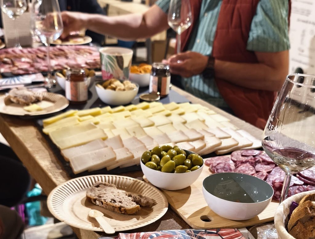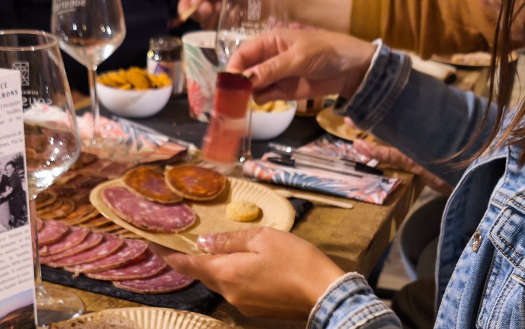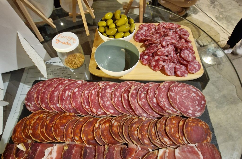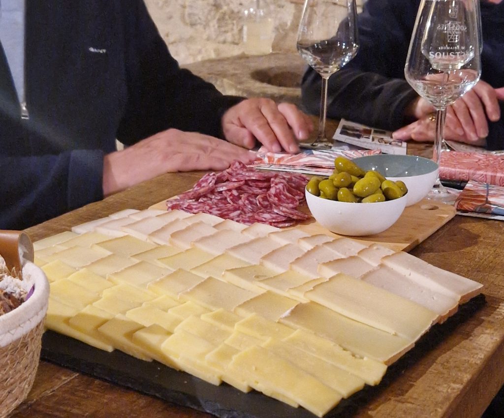 Nous accompagnerons cette dégustation de planches de charcuterie du Tarn et de l’Aveyron et d’une sélection de fromages d’Occitanie et d’Auvergne accompagnées d‘olives Lucques, des sablés salés de Julian, un artisan biscuitier local et de confits de vin élaborés par Aurélie, confiturière artisanale locale.