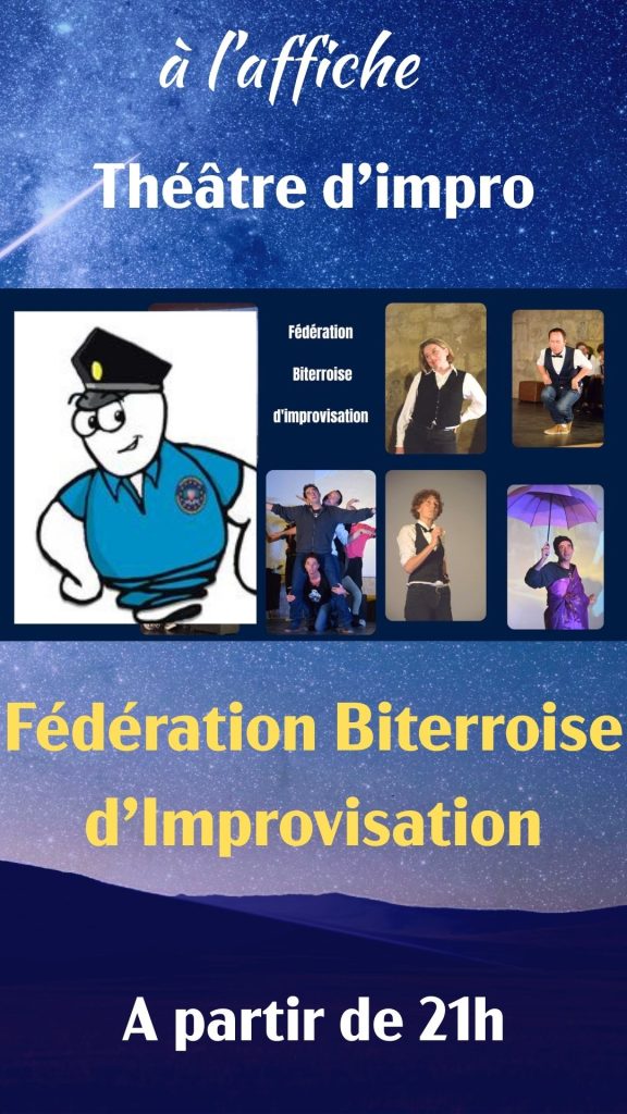 The show, of the improv theater but not just any one, that of F.B.I., the Cie Biterroise of improvisation which have been giving us the pleasure for 3 years to participate in the closing evening of the Sensorielles. The public asks for it again every year!